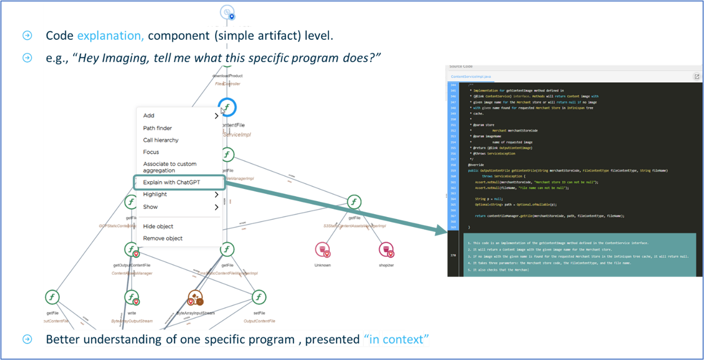 One can already get answers to such questions by navigating the blueprint visualization rendered by a software intelligence engine; however, GenAI can make that easier by providing a natural language conversation.