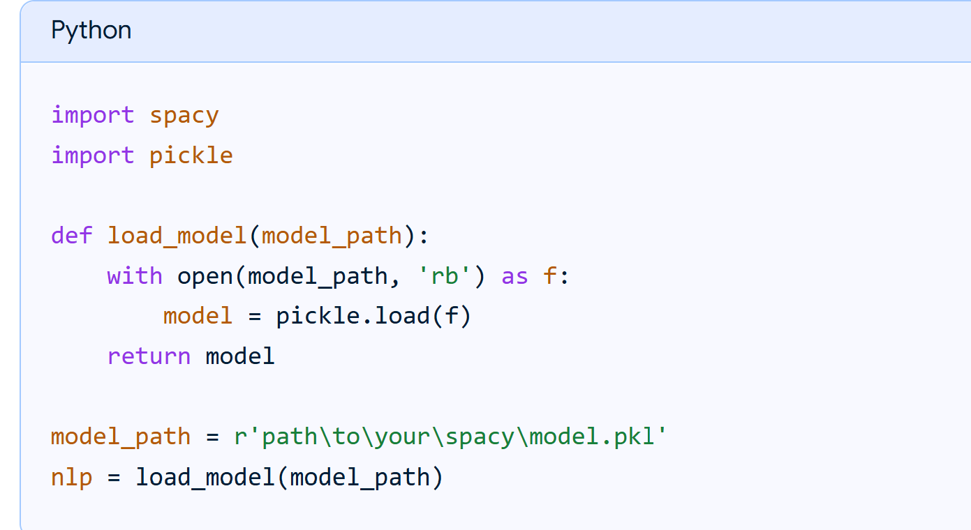 Step 1: Create ML spaCy model using trained dataset, and generate *.pkl file and load –