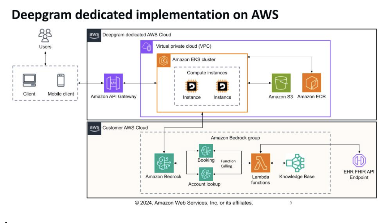 The Deepgram platform is already deeply integrated with AWS, enabling IT teams to deploy it on the Amazon Elastic Kubernetes Service (EKS) service while storing data on the Amazon S3 cloud storage service. IT teams can also invoke application programming interfaces (APIs) via the Amazon API Gateway and AWS Lambda serverless computing framework to securely orchestrate interactions between Deepgram’s voice AI APIs and other services, including the Amazon Bedrock service for hosting AI models.