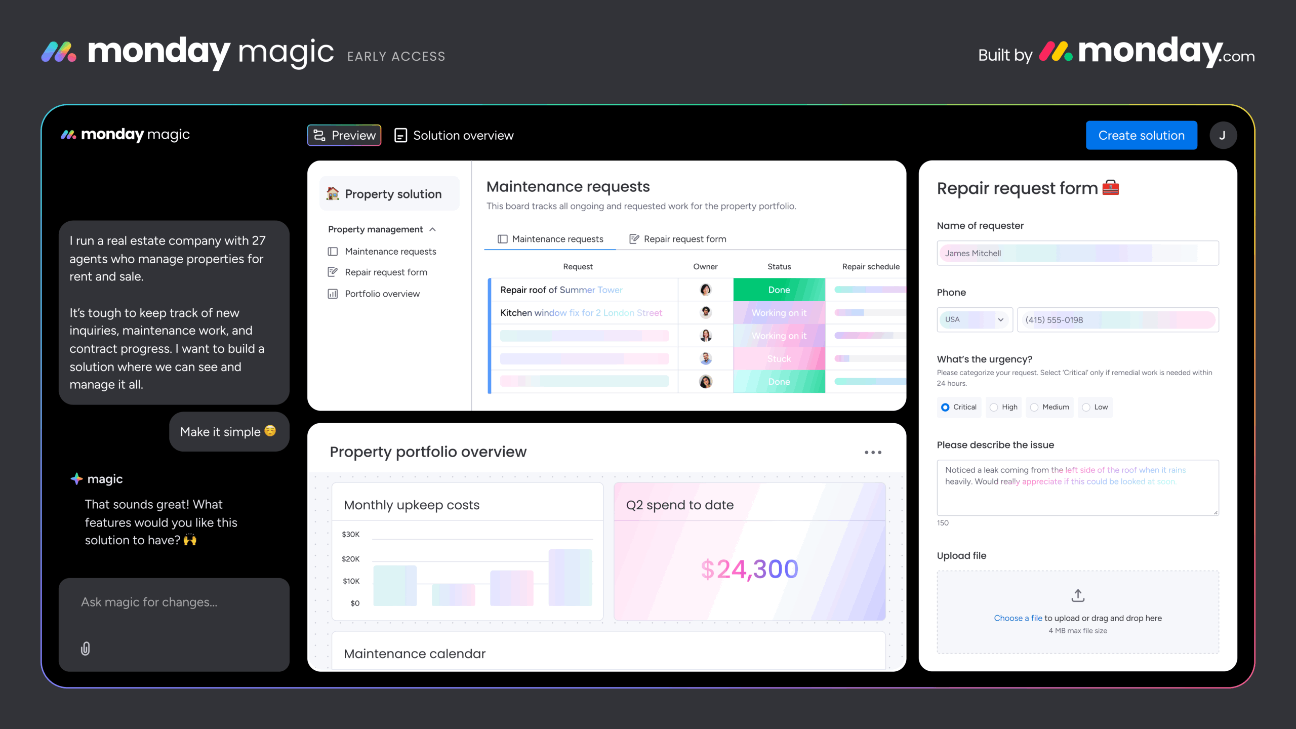 Currently used by approximately 245,000 organizations, the monday magic tool now makes it possible for end users to describe, in a single plain language prompt, their workflow requirements, which will then be used to generate a complete, fully functional workflow or board that aligns with established business best practices.